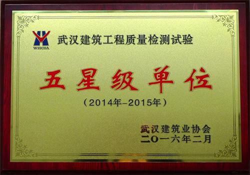2013年我公司被武漢建筑業(yè)協(xié)會(huì)選為檢測試驗(yàn)工作委員會(huì)副主任委員單位,2012-2017年連續(xù)五年被評為先進(jìn)單位,2013、2015、2017年連續(xù)三屆被評為武漢市建設(shè)工程質(zhì)量檢測機(jī)構(gòu)五星級檢測單位。2017-20…